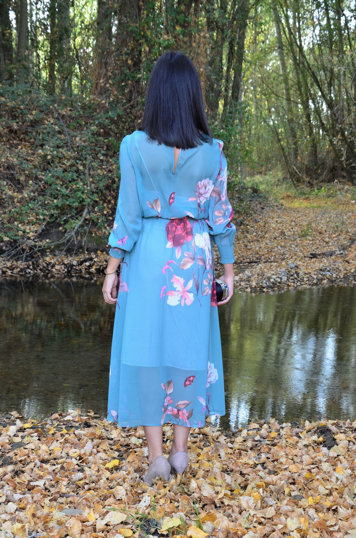 Con tonos otoñales, estilo vintage y mangas largas con puños es una prenda perfecta para este tiempo. Es de gasa y trae una combinación midi en color nude para evitar que se nos transparente. Ademas me encanta que tenga longitud hasta los tobillos, a las que no somos especialmente altas nos favorecen mas que los que llegan hasta el suelo.